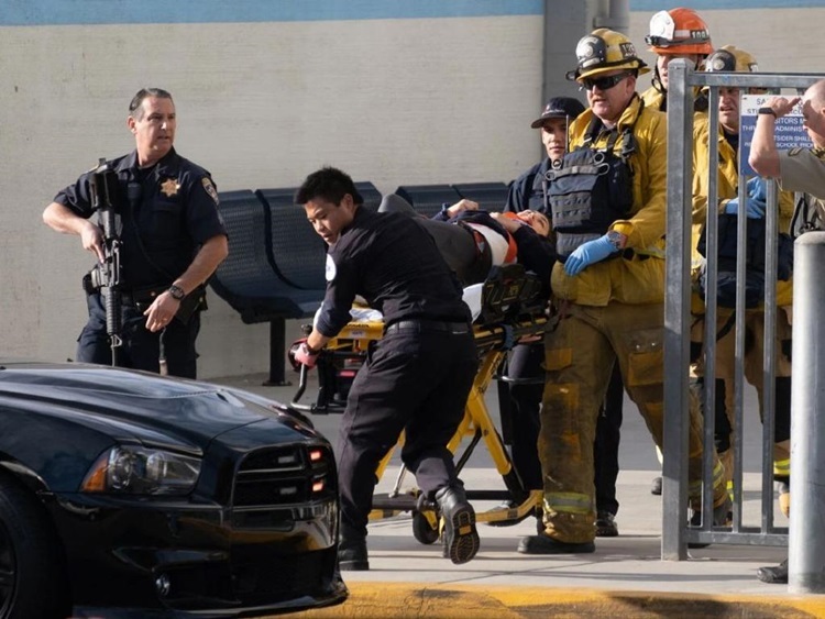 Cảnh sát đưa người bị thương đi cấp cứu sau vụ xả súng ở trường Saugus, california hôm 14/11. Ảnh: Australscope.