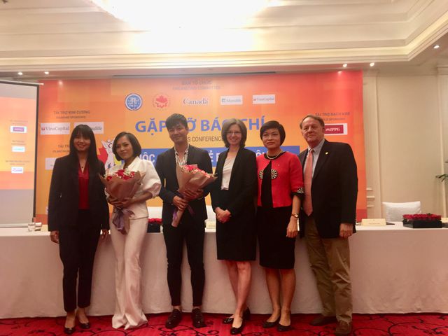Đại sứ Canada tại Việt Nam Deborah Paul (thứ 3 từ phải sang) chụp ảnh cùng đại diện ban tổ chức và người nổi tiếng tham gia sự kiện (Ảnh: Đức Hoàng)