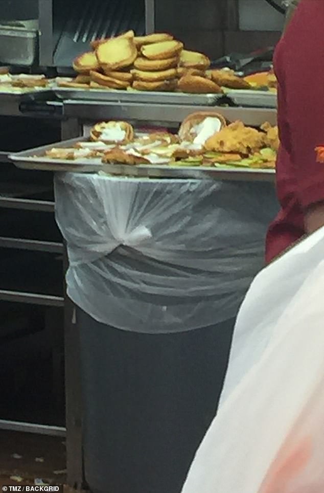 Nhân viên chuẩn bị bánh cho khách ngay trên thùng rác (Nguồn: Dailymail)