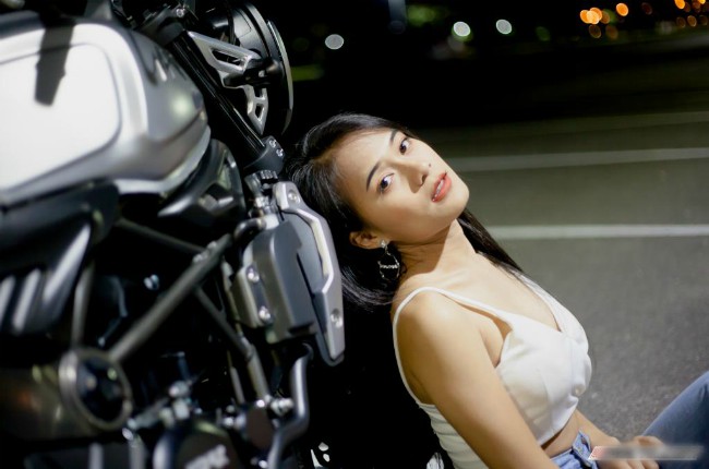 Người đẹp trẻ trung khoe sắc bên mô tô.