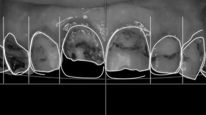 "Bệnh nhân này các tổn thương răng, hàm không đối xứng, nguyên nhân là do sử dụng nước ngọt làm hư răng, men răng mất dần đi, không giữ được chân răng ổn định, răng bị sứt mẻ và có những lỗ sâu lớn", bác sĩ Quỳnh Tiên phân tích.