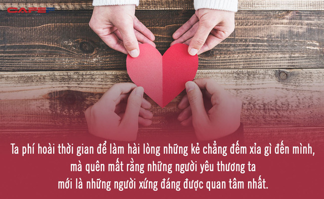 Rõ ràng, những người chúng ta hao tâm tổn trí để phục vụ thực chất chỉ là những kẻ qua đường trong cuộc sống. Ta phí hoài thời gian để làm hài lòng những kẻ chẳng đếm xỉa gì đến mình, mà quên mất rằng những người yêu thương ta mới là những người xứng đáng được quan tâm nhất.