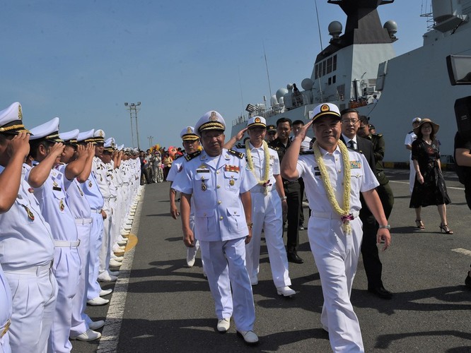 Lễ đón tàu chiến của Hải quân Trung Quốc thăm cảng Ream hồi tháng 1/2019.