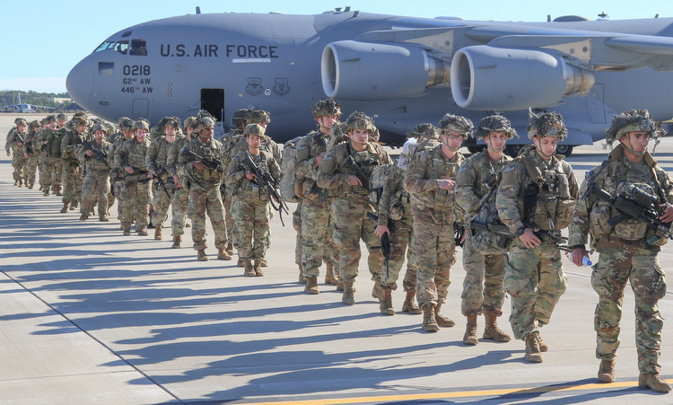 Binh sĩ Mỹ sư đoàn dù 82 lên đường tới Trung Đông hôm 1/1. Ảnh: Lầu Năm Góc.