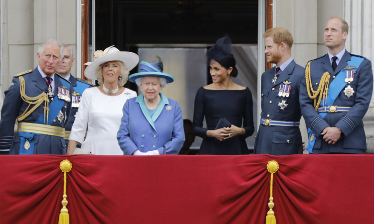Công nương Meghan (thứ ba từ phải sang) cùng các thành viên Hoàng gia Anh tại Điện Buckingham hồi tháng 7/2018. Ảnh: AFP.