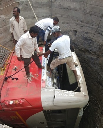 Đội cứu hộ phải sử dụng cần cẩu để đưa chiếc xe buýt màu đỏ trắng ra khỏi giếng. Hoạt động cứu hộ kết thúc sáng nay và các nạn nhân chủ yếu là hành khách trên xe buýt. Thủ tướng Ấn Độ Narendra Modi đã gửi lời chia buồn về vụ tai nạn này.