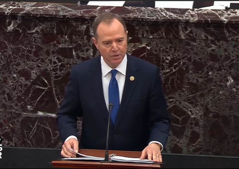 Chủ tịch Ủy ban Tình báo tại Hạ viện Adam Schiff có bài phát biểu cuối cùng trong phiên tòa hôm 3-2. Ảnh: PSB NEWS