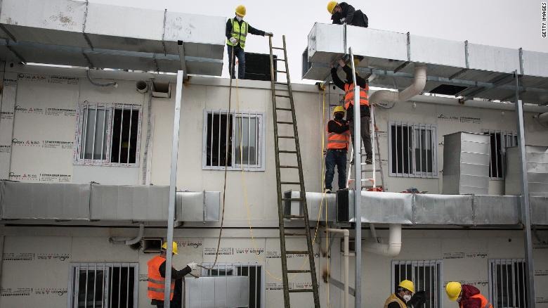 Công nhân làm việc ngày đêm để xây dựng bệnh viện (ảnh: CNN)