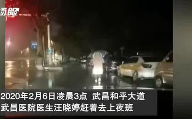 Một nữ bác sĩ hết giờ làm tại bệnh viện, lại dò dẫm trở về khách sạn thay vì về nhà, khiến người chồng đành lò dò lái xe theo sau, bật đèn pha soi đường cho vợ mỗi đêm đi làm về đang tự cách ly vì sợ mắc Covid-19, khiến đoạn video cảm động được ghi trong một đêm mưa ở Vũ Hán.