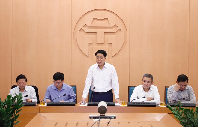 Ông Nguyễn Đức Chung, chủ tịch UBND TP. Hà Nội phát biểu tại cuộc họp.