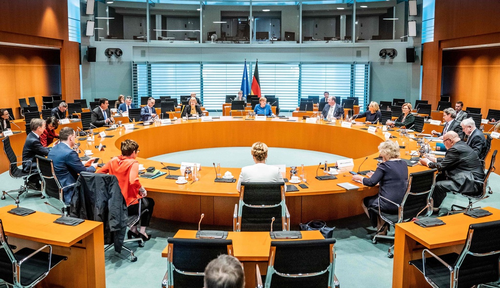 Thủ tướng Angela Merkel họp nội các ngày 18/3. Ảnh: AFP.Thiếu sự nhất quán trong ứng phó