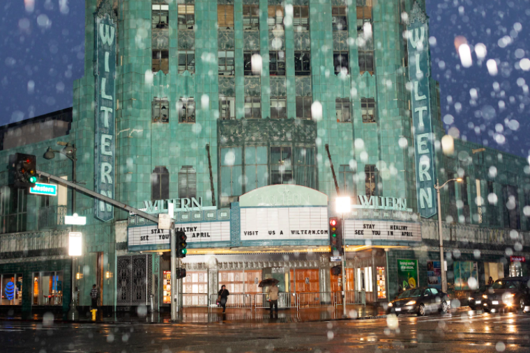 Bên ngoài Wiltern Theatre, Los Angeles, treo biển đóng cửa ngày 16/3. Ảnh: The Washington Post.