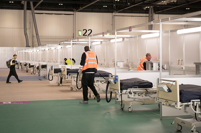 Trong vòng 9 ngày, Trung tâm triển lãm ExCel đã được cải tạo với bộ khung cho 80 khu điều trị, mỗi khu có 42 giường bệnh.