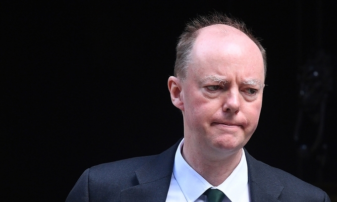 Cố vấn y tế chính phủ Anh Chris Whitty tại số 10 phố Downing hôm 14/4. Ảnh: AFP.