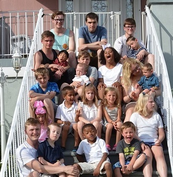 Brittany Jencik (hàng thứ ba từ dưới lên, ngoài cùng bên phải) trong bức ảnh chụp cùng các con. Ảnh: Fox.