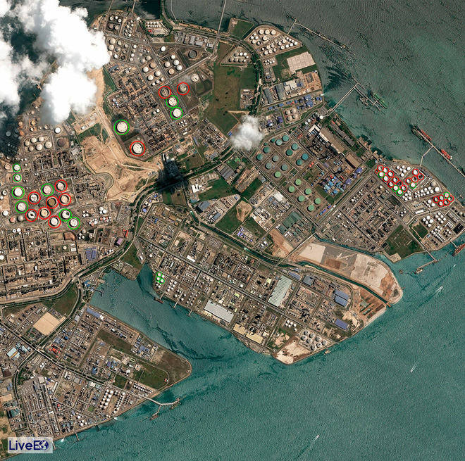 19/4/2020: Hơn một năm sau, công suất khai thác của kho khác trước do ảnh hưởng của đại dịch Covid-19. 23 bể trong tổng số 38 bể dầu nổi và chỉ có khoảng 15 bể có vẻ cạn dầu. Công suất khai thác là 60%.