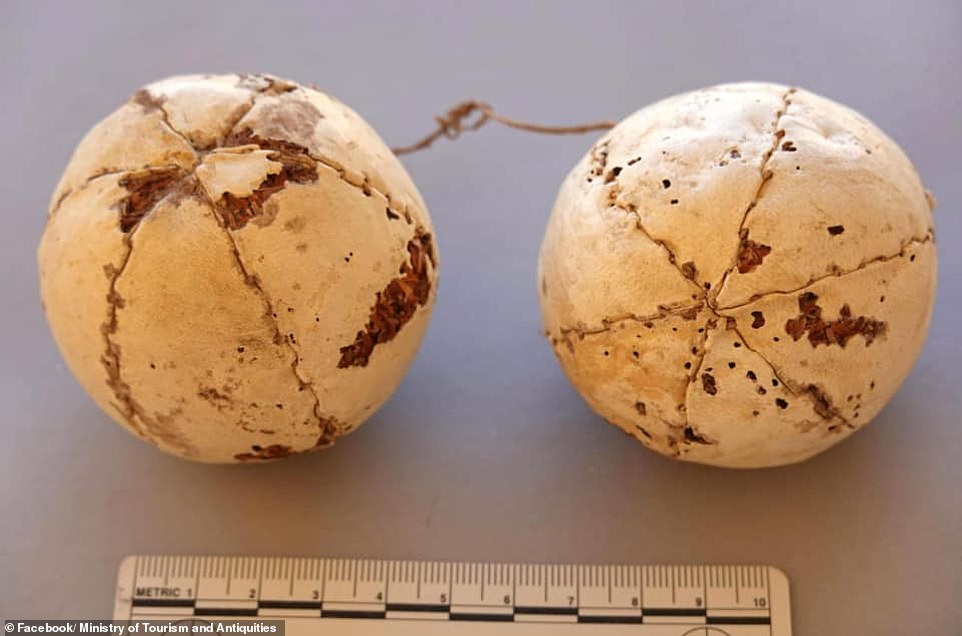 Họ cũng tìm thấy một đôi giày da và những quả bóng da được buộc lại bằng một sợi dây - những quả bóng là một phần của một trò chơi phổ biến của các cô gái trẻ thời đó.