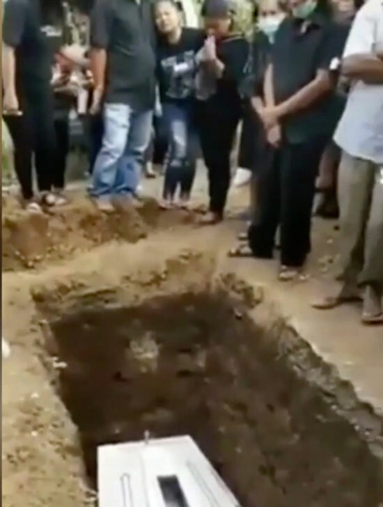 Đoạn video được quay trong một buổi mai táng tại thành phố Manado hôm 5/5, làm dấy lên lo ngại nạn nhân có thể đã bị chôn sống. Trong video, gia đình đứng thành vòng tròn xung quanh huyệt trong khi linh mục đọc lời cầu nguyện.
