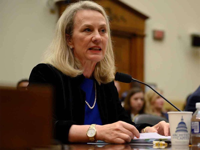 Alice Wells, phó trợ lý Ngoại trưởng Mỹ về các vấn đề Trung và Nam Á, phát biểu tại viện nghiên cứu Hội đồng Đại Tây Dương ở thủ đô Washington, Mỹ hôm 20/5. Ảnh: AFP.