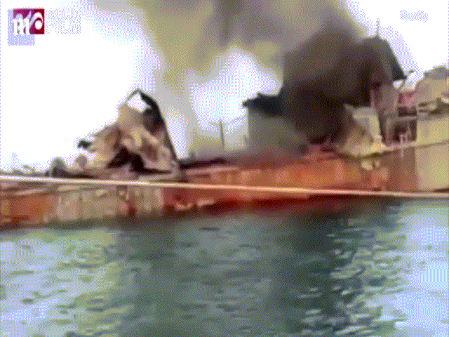 Tàu Konarak sau khi trúng tên lửa. Ảnh: Truyền thông nhà nước Iran