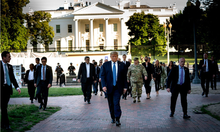 Ngày 1/6, ông điều quân giải tán người biểu tình và "diễu hành" qua công viên Lafayette với sự hộ tống của quan chức cấp cao Bộ Quốc phòng. Bộ trưởng Quốc phòng Mark T. Esper và Chủ tịch Hội đồng Tham mưu trưởng Liên quân Mark Milley cũng có mặt.