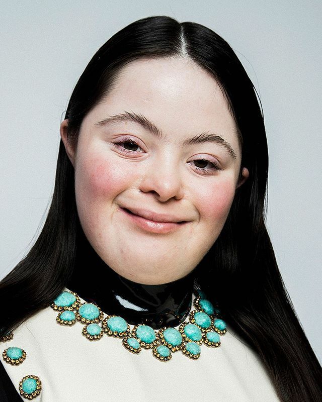 Cô gái bệnh Down làm mẫu cho Gucci. Cô gái mắc bệnh Down Ellie Goldstein tham gia chiến dịch quảng bá ḍng sản phẩm làm đẹp cho Gucci.