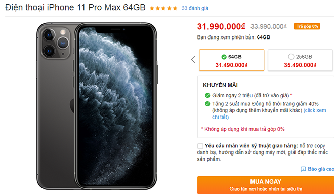 5. iPhone 11 Pro Max (giảm từ 1,5 – 02 triệu đồng)