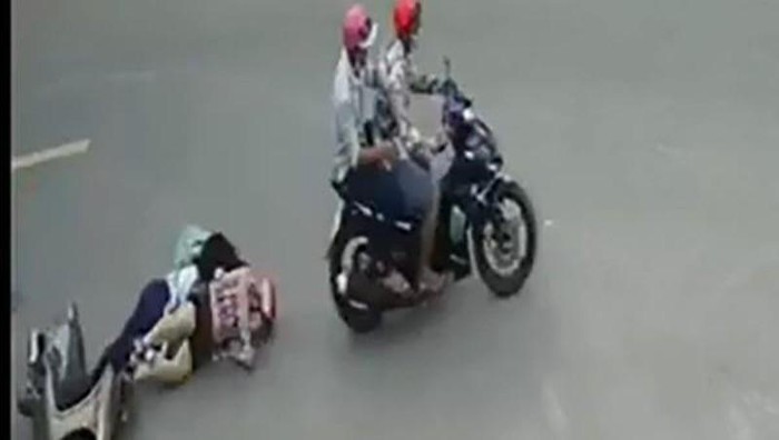 Trong khi chạy xe máy chở con gái 13 tuổi đi trên đường số 3 (quận Bình Tân, TPHCM), chị L. bị 2 đối tượng giật túi xách ngã xuống đường, chấn thương sọ não.