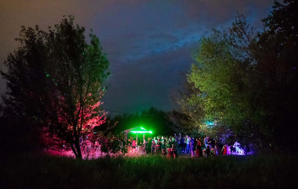 Những ngọn đèn màu được treo trên cây, các túp lều được dựng lên gọn ghẽ để phục vụ bia cho người tham dự. DJ đã sẵn sàng trên sân khấu. Hầu hết người tham dự tiệc đều không phải trả phí, tuy nhiên, họ phải đi đến một địa điểm biệt lập khá xa trung tâm để thoát khỏi sự tuần tra của cảnh sát.
