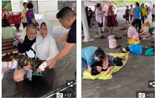 Video do truyền thông Trung Quốc đăng tải, cho thấy cảnh nhiều người bị thương nằm la liệt, chờ cấp cứu ở điểm cuối cùng của cầu kính. Không ít người nằm bất động hoàn toàn.