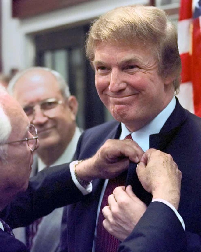 Ông Trump được trao một chiếc ghim tại bảo tàng Vịnh Con Lợn vào ngày 15/11/1999. Ảnh: AP.