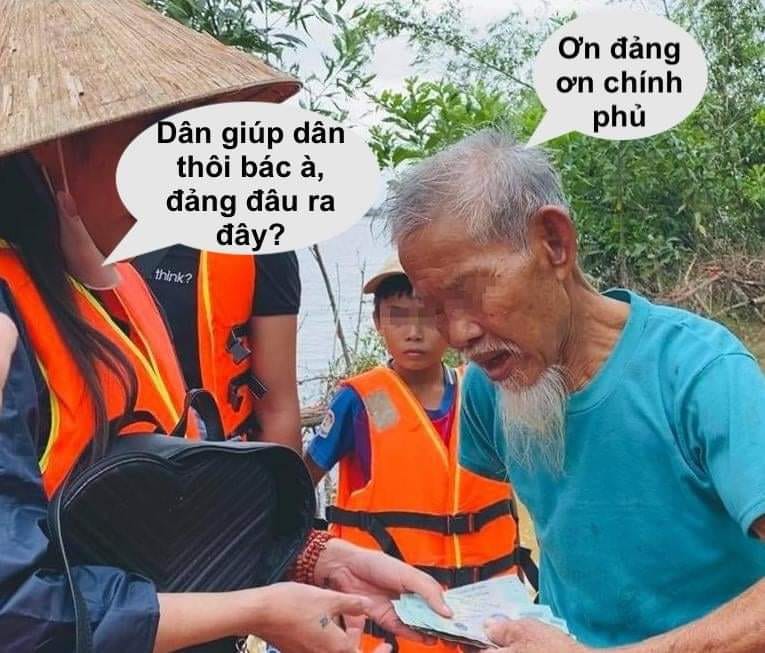 👉"Các bác đừng nói câu cửa miệng ơn đảng ơn chính phủ nữa. Toàn bộ số quà và tiền này đều là do những nhà hảo tâm trong và ngoài nước góp vào để hỗ trợ các bác, dù họ không hề quen biết các bác."