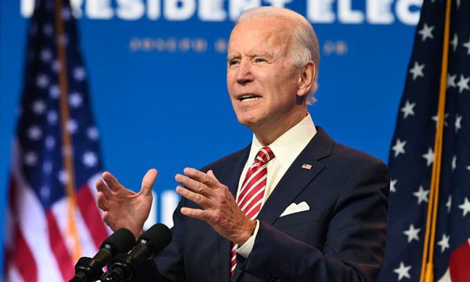 Tổng thống đắc cử Biden tại cuộc họp báo ở Wilmington, bang Delaware, hôm 16/11. Ảnh: AFP.