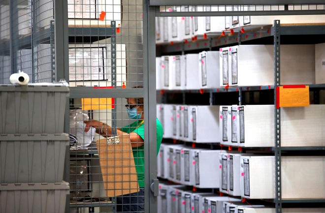Nhân viên tại Trung tâm Bầu cử hạt Clark thuộc bang Nevada hôm 6/11. Ảnh: Reuters.