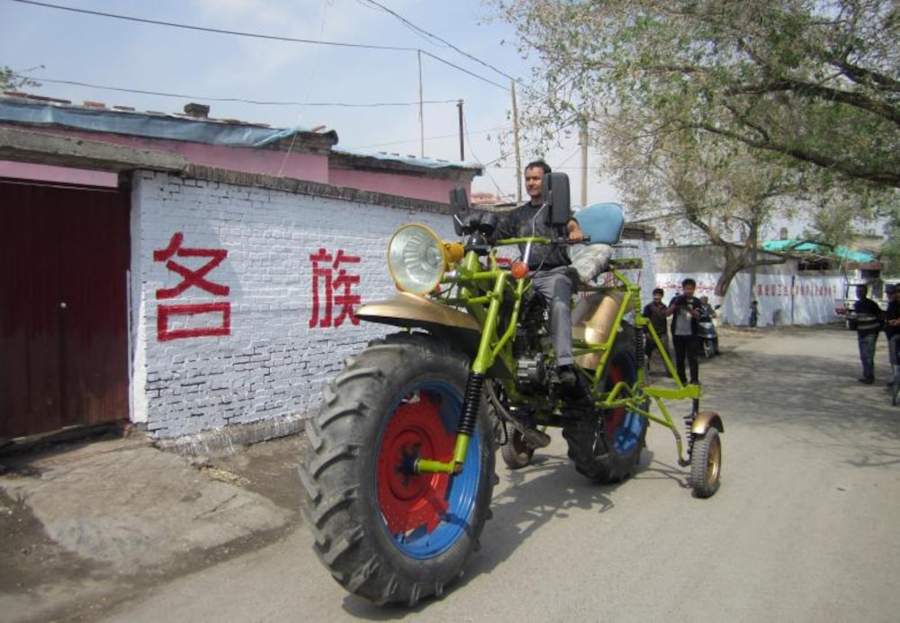 Ông Zhang Yali đang chạy thử một chiếc xe ông và một số người bạn tạo ra bên ngoài một nhà kho đi thuê tại Cát Lâm, Trung Quốc.