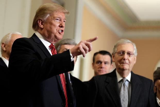 Tổng thống Donald Trump phát biểu bên cạnh Lãnh đạo Đa số Thượng viện Mitch McConnell
