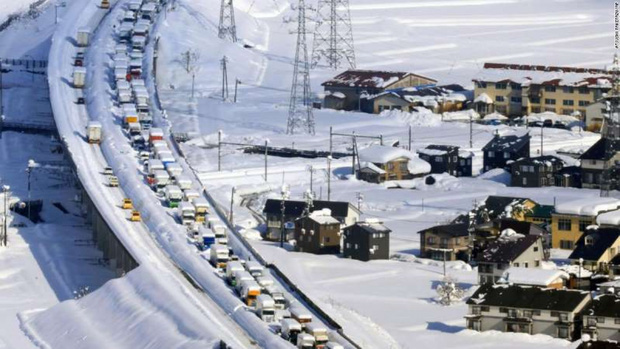 Hơn 1.000 người ở Nhật Bản đã phải trải qua đêm 17/12 dưới mưa tuyết trong ô tô của họ trên đường cao tốc vì tắc đường.