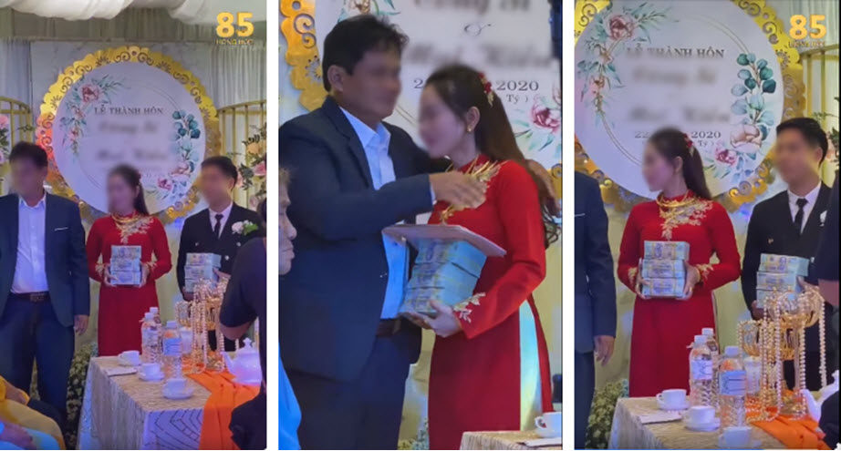 Mới đây, trên mạng xã hội chia sẻ đoạn clip ghi lại cảnh cha mẹ trao số hồi môn khủng cho cô dâu và chú rể trong ngày vu quy khiến cả hội trường lẫn người xem phải trầm trồ không ngớt. Theo như chia sẻ, đám cưới của cô dâu M.K. và chú rể C.S diễn ra ở Bình Thuận vào hôm 22/12 vừa qua.