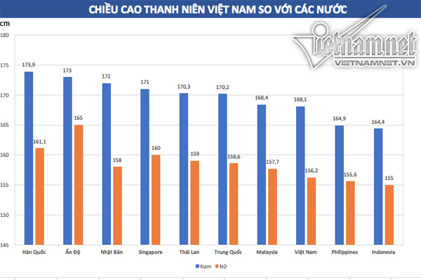 Với chiều cao hiện tại, Việt Nam đang đứng thứ 4 khu vực ASEAN, xếp sau Singapore (nam cao 171cm, nữ cao 160cm), Thái Lan (nam cao 170,3cm, nữ cao 159cm), Malaysia (nam cao 168,4cm, nữ cao 157,7cm).