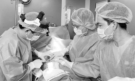 "Đây chính là nguyên nhân gây nhiễm trùng ngực và tích tụ ổ áp xe dịch mủ khổng lồ trong ngực bệnh nhân. Với trường hợp này, chúng tôi nhanh chóng tháo túi ngực cũ, kiểm tra kỹ lưỡng khoang ngực, đồng thời bơm rửa, cắt lọc mô hoại tử, khâu tạo hình khép lỗ thủng trên ngực phải cho bệnh nhân để vừa đảm bảo an toàn và thẩm mỹ", bác sĩ Tú Dung nói.