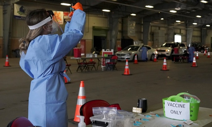 Nhân viên y tế chuẩn bị vaccine Covid-19 tại một điểm tiêm chủng ở Texas, Mỹ, ngày 9/2. Ảnh: Reuters.