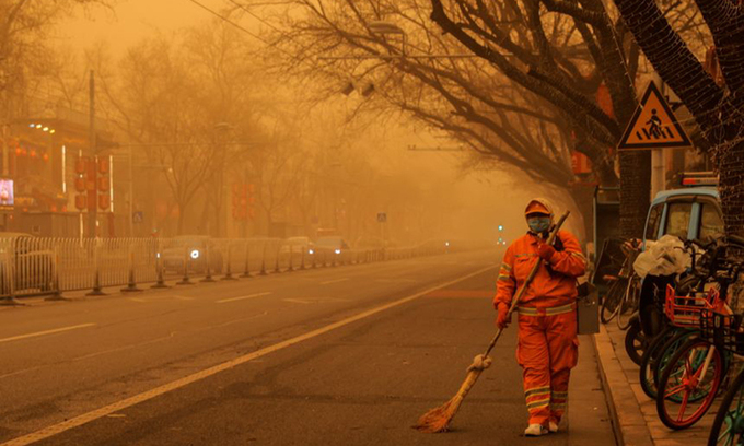 Bắc Kinh bị bao phủ trong lớp bụi màu nâu dày do bão cát thổi từ Nội Mông và các khu vực khác ở tây bắc đất nước.