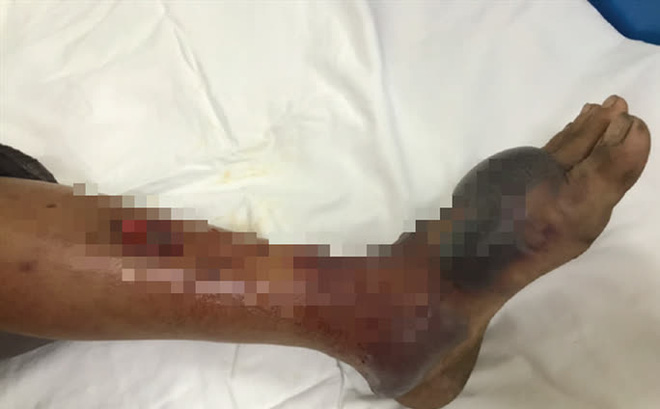Cách đây khoảng 2 tuần, bệnh nhân L.C được đưa đến Bệnh viện Quy Hòa trong tình trạng huyết áp tụt, người mệt nhiều, đau đầu, chóng mặt, sốt cao, kèm thương tổn ở chân lan rộng, hoại tử.