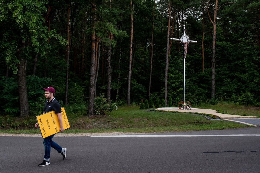Năm ngoái, Bartosz Staszewski, một nhà hoạt động ủng hộ cộng đồng LGBT từ thủ đô Warsaw, đem theo tấm bảng ghi dòng chữ "vùng không có người đồng tính" đến check-in ở bảng tên của nhiều thị trấn rồi chụp ảnh đăng lên mạng xã hội.