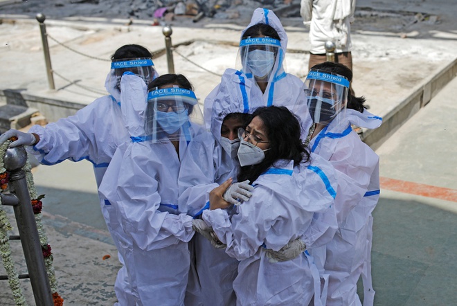 Người nhà của một bệnh nhân qua đời do Covid-19 tại Ấn Độ. Ảnh: Reuters.