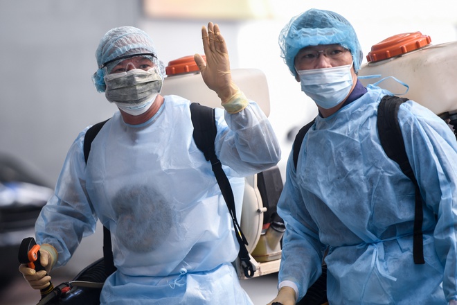 Nhân viên y tế thực hiện phun, xịt khử khuẩn tại TP.HCM. Ảnh: Duy Hiệu.