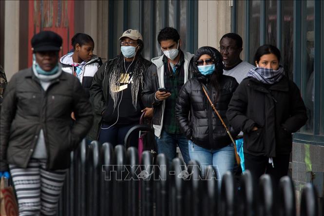Người dân ở New York, Mỹ đeo khẩu trang phòng ngừa dịch COVID-19. Ảnh: THX/TTXVN