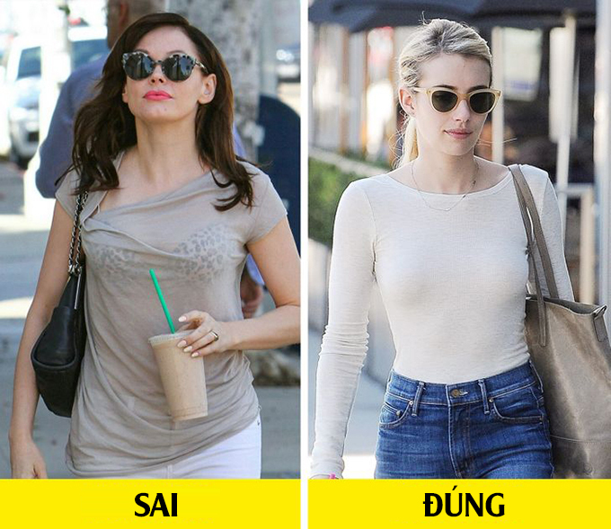 - Áo lót quá rộng sẽ không có khả năng nâng đỡ, còn quá chật thì tạo thành ngấn kém duyên. Hãy chắc chắn rằng bra bạn mặc thật vừa vặn, điều đó không chỉ mang lại hình ảnh đẹp mà còn có lợi cho sức khỏe.