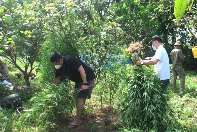Nhà chức trách thu giữ cây cần sa trồng xen canh. Ảnh: Công an cung cấp.