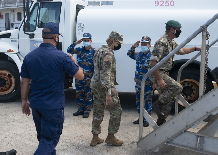 Hai chuẩn tướng gặp gỡ sĩ quan chỉ huy tàu Đặng Lê Sơn, đồng thời chào đón thủy thủ đoàn tới Honolulu và bày tỏ mong muốn hỗ trợ thủy thủ đoàn trong thời gian lưu trú tại đây.